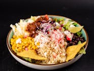 Zloženie: kuracie mäso, Pico de Gallo, koriander, zmes šalátov, Feta syr, limetka, mango dip, granátové jablko, Salsa verde, tacos shells